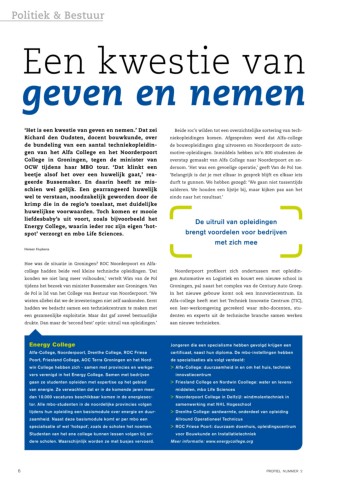 dan 10.000 vacatures beschikbaar komen in de energiesec- > Noorderpoort College in Delfzijl: windmolentechniek in