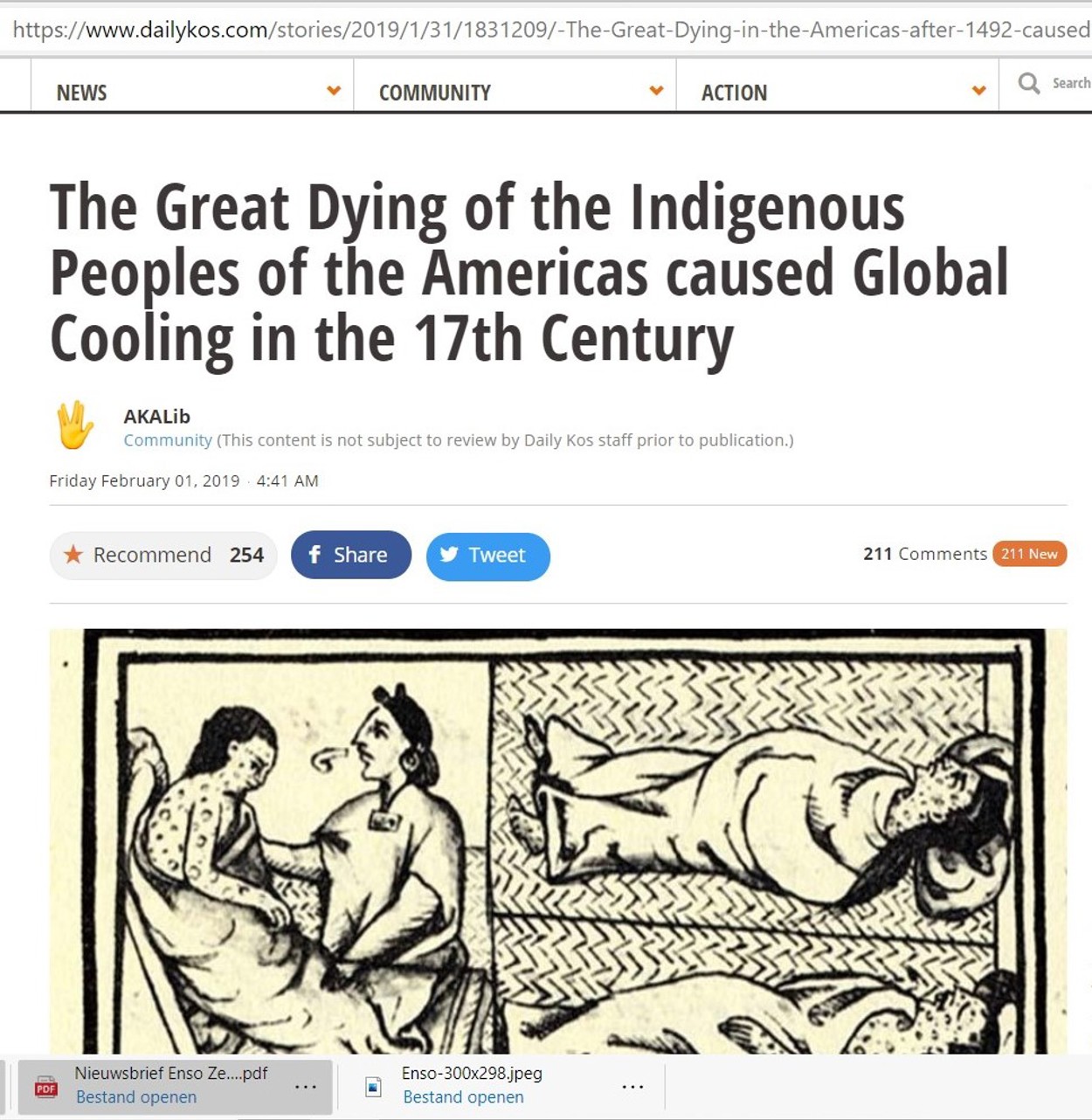 De Amerikaanse nieuwszender CNN maakte er begin 2019 melding van onder de kop: European colonizers killed so many Native Americans that it changed the global climate, researchers say. De titel verdient enige herlezing om de impact ervan te kunnen bevatten. Het onderzoek waarnaar het CNN artikel verwijst heeft zelf als titel: Earth system impacts of the European arrival and Great Dying in the Americas after 1492.