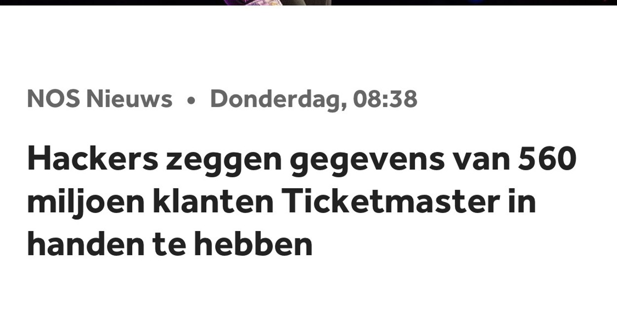 - Hackers zeggen gegevens van 560 miljoen klanten Ticketmaster in handen te hebben