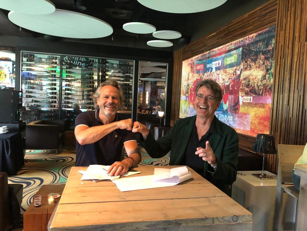 Fotobijschrift: Bestuursvoorzitters Carlo Segers (Friesland College) en Wim van de Pol (Noorderpoort) ondertekenen de samenwerkingsovereenkomst.