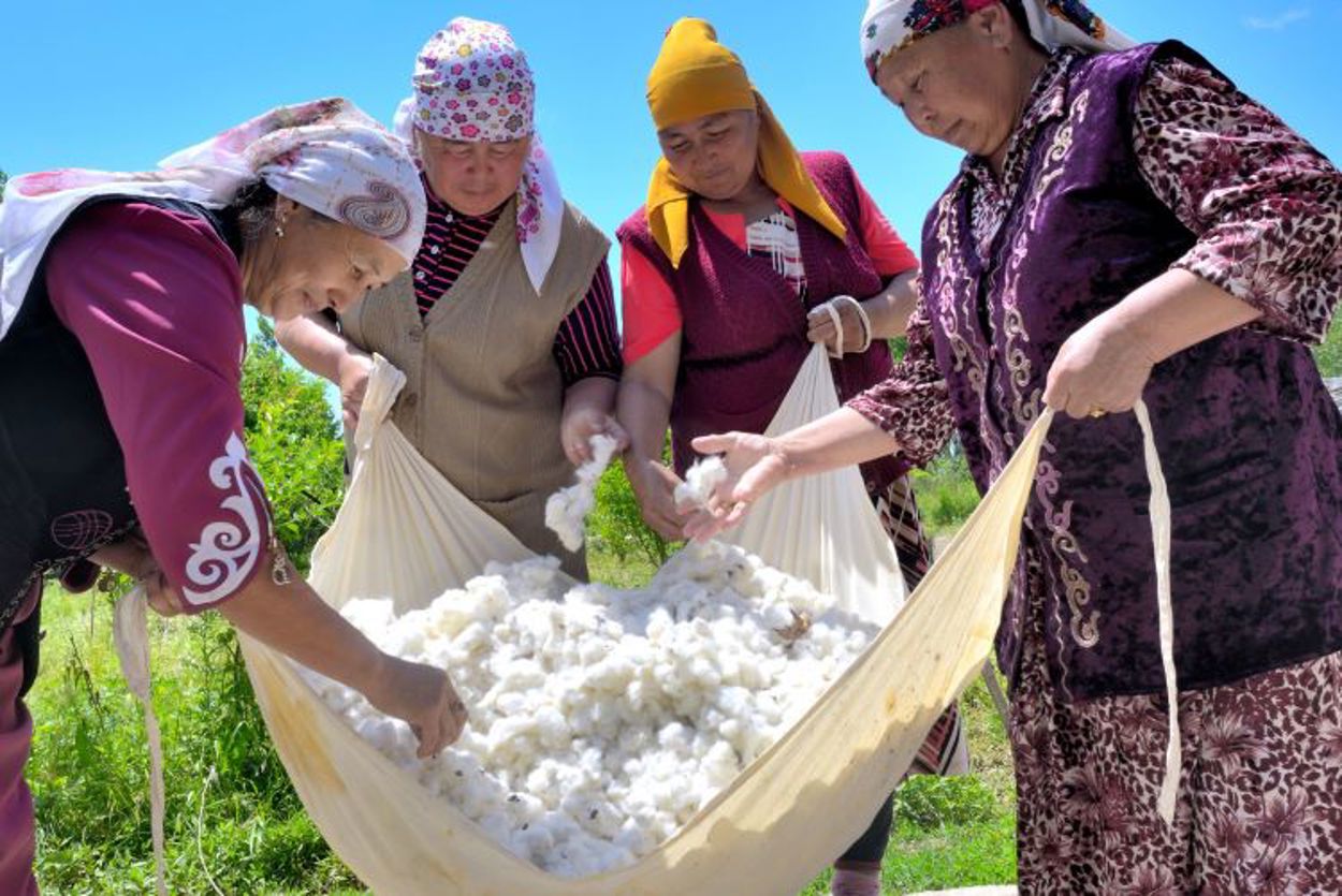 Foto: Sorteren van katoen. Fairtrade helpt boeren en arbeiders in ontwikkelingslanden een betere plek te verwerven in de handelsketen. (bron: Summa College, afd. Communicatie)