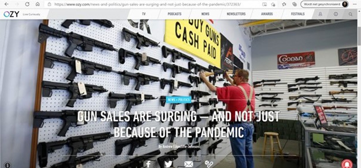 Het is deze groep ook die boven alles het bezit van wapens als een persoonlijk recht beschouwt. Geen land waar per hoofd van de bevolking zoveel wapens in omloop zijn. In de VS zijn onder een bevolking van 330 miljoen naar schatting 400 miljoen vuurwapens in omloop. In het pandemiejaar 2020 werden tegen de 23 miljoen (!)vuurwapens verkocht een absoluut record. Verkopers van wapens dat jaar noteerden wachtlijsten voor bestellingen. Niet eerder werden kwamen zoveel mensen door vuurwapengeweld om het leven: bijna 19.379! Dat is exclusief het aantal van 12.000 mensen die zich met een vuurwapen van het leven beroofden. De statistieken noteerden 611 ‘mass shootings’ in 2020. Van een mass shooting is sprake als er vier of meer dan vier personen gedood zijn bij een schietincident. Ter vergelijking. Als de VS hetzelfde aantal vuurwapendoden als Nederland (44 op 17 miljoen inwoners) zou hebben, zou het totaal aantal doden op circa 900 liggen. In werkelijkheid ligt verhoudingsgewijs 20 keer hoger.