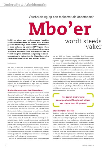 ting Ondernemerschap in onderwijs, constateert dat onderne- onderwijs.’ Voor ROC Midden Nederland en MBO Utrecht heeft