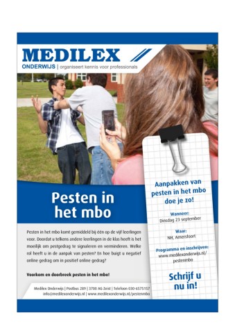 info@medilexonderwijs.nl | www.medilexonderwijs.nl/pestenmbo