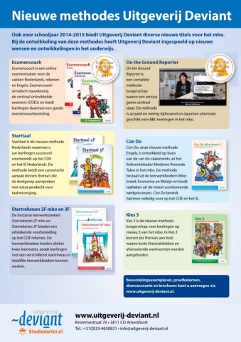 Ook voor schooljaar 2014-2015 biedt Uitgeverij Deviant diverse nieuwe titels voor het mbo.