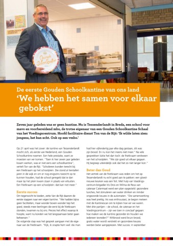 maar óp het plein kwam staan in plaats van erbuiten. nieuwe keuken was een feit. Met hulp van Voedings vmboschool.” En de Gouden Schoolkantine Schaal? informatie en tips, zoals een Kantinescan, een voorbeeld
