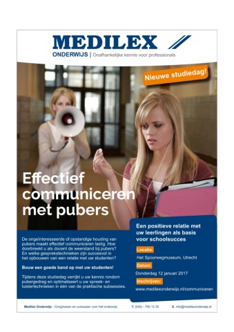 Medilex Onderwijs - Congressen en cursussen voor het onderwijs T. (030) - 700 12 20 E. info@medilexonderwijs.nl