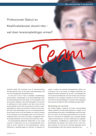 ding krijgen het advies om actief deel te worden van het team. Ook Christel Kuijpers, werkzaam bij Fontys Lerarenopleiding