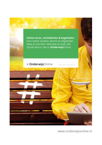 Online leren, ontwikkelen & begeleiden Voor iedere student, docent en begeleider. Waar je ook bent. Wanneer je maar wilt. Op elk device. Dat is #OnderwijsOnline. Powered by Trajectplanner www.onderwijsonline.nl