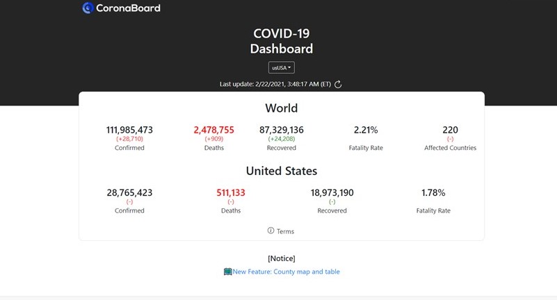 - Tussen februari 2020 - 8 januari 2021 verloren 370.000 Amerikanen hun leven als gevolg van COVID-19. Circa 75% van hen had volgens experts medisch verzorgd kunnen worden en kunnen overleven als de federale overheid samen met de 50 staten een gedegen preventief zou hebben gevoerd.