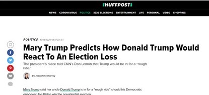 - Ruim voor de verkiezingen schetste Trumps nicht Mary Trump in een boek en in de media een beeld van haar oom en wat hij zou doen als hij de verkiezingen zou verliezen: The president’s niece told CNN’s Don Lemon that Trump would be in for a “rough ride.”?
