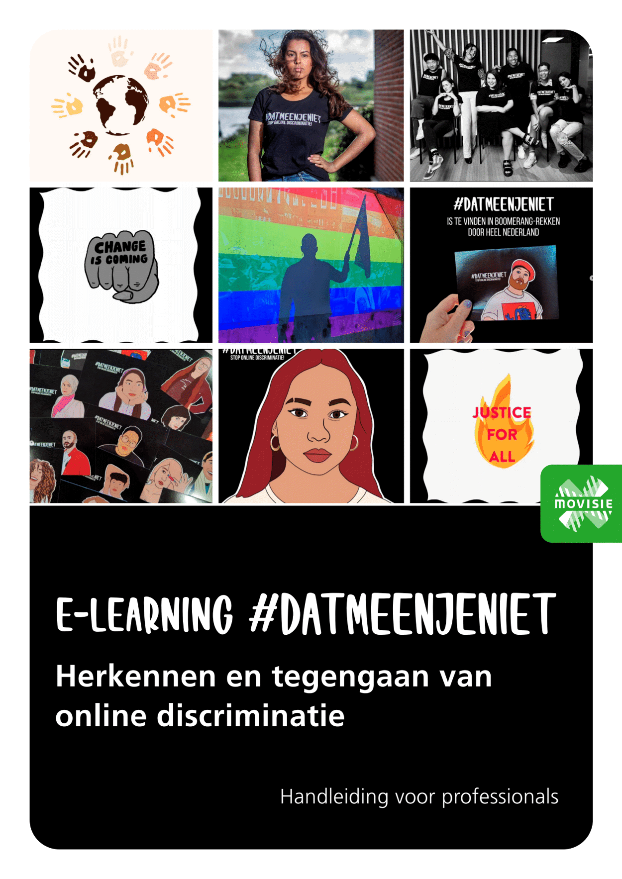 Deze e-learning is het resultaat van het driejarige project #DatMeenJeNiet, een initiatief van Movisie, Diversity Media en Hogeschool Inholland. In dit project werden jongeren en jongvolwassen begeleid in hoe zij online het verschil kunnen maken, hoe je van het zijn van een zogenaamde bystander een upstander wordt: iemand die in actie komt tegen online discriminatie. Uit eerder onderzoek van Movisie blijkt dat de reacties van omstanders bij discriminatie erg belangrijk zijn. Zo past de dader het bericht mogelijk aan, voelt het slachtoffer zich gesteund en wordt er een sociale norm gecommuniceerd waaruit blijkt dat online discriminatie niet normaal is.