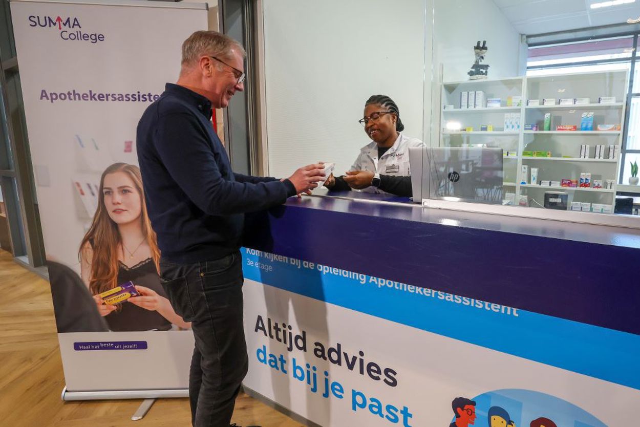 Voor het eerst biedt een Nederlandse onderwijsinstelling onderdak aan een apotheek. “We zijn trots dat onze studenten op deze manier laagdrempelig en in een veilige omgeving extra praktijkervaring kunnen opdoen”, zegt Charlotte Hulsen, docent opleiding apothekersassistent van Summa Zorg. Het servicepunt benadrukt ook de maatschappelijk rol van de onderwijsinstelling. Haar collega Marie-José van der Velden: “Naast Summa in de Buurt, dat ook in school gehuisvest is, kunnen we buurtbewoners nu ook helpen met een apotheek dichtbij.”