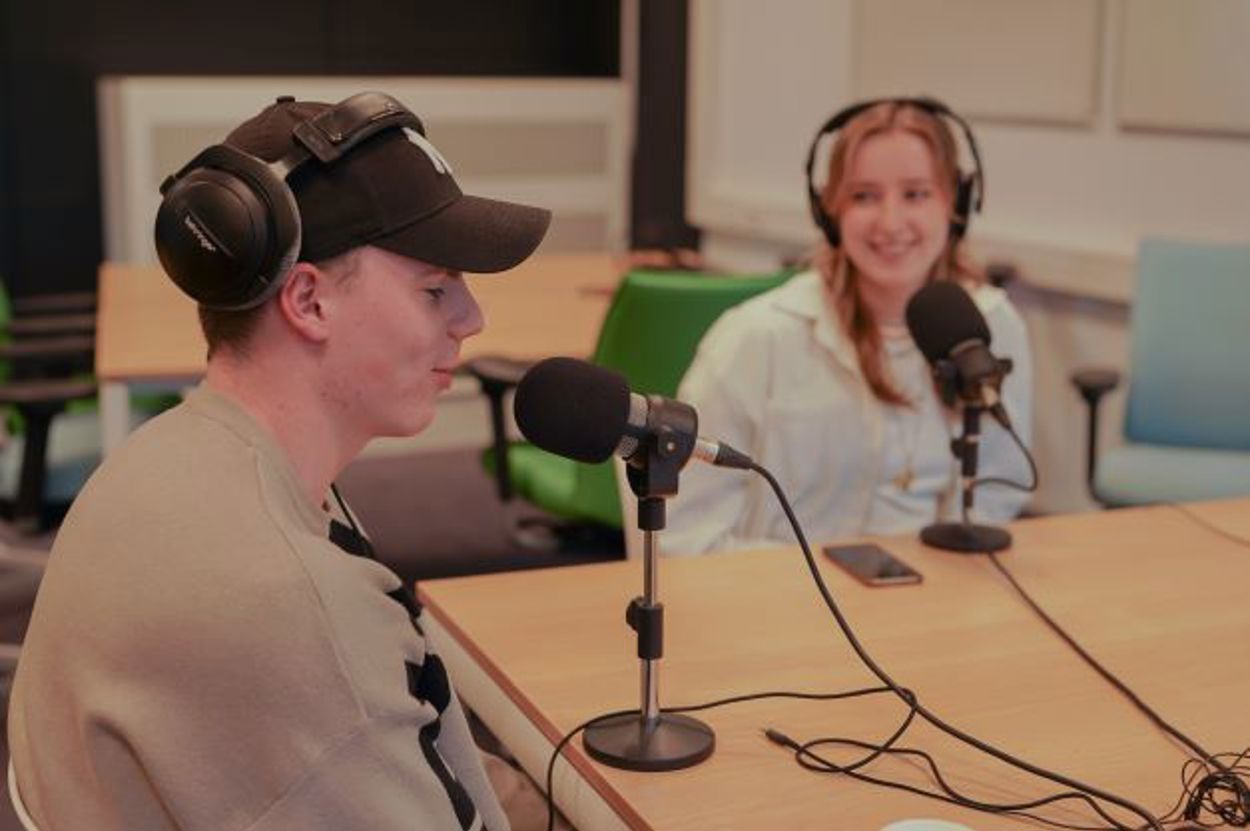 Platform Profielactueel en De Clipjesfabriek (erkend leerbedrijf) zetten in mei en juni 2022 podcast op de onderwijskaart. Wat gebeurt er en wat is er mogelijk? Wekelijks wordt een podcast gepubliceerd onder de titel HET LEERMOMENT: studenten spreken zich uit over het leven in het algemeen; over drank, liefde, carrière, geld, studeren, docenten… | Webfoto: De Clipjesfabriek | Jonathan en Lieke