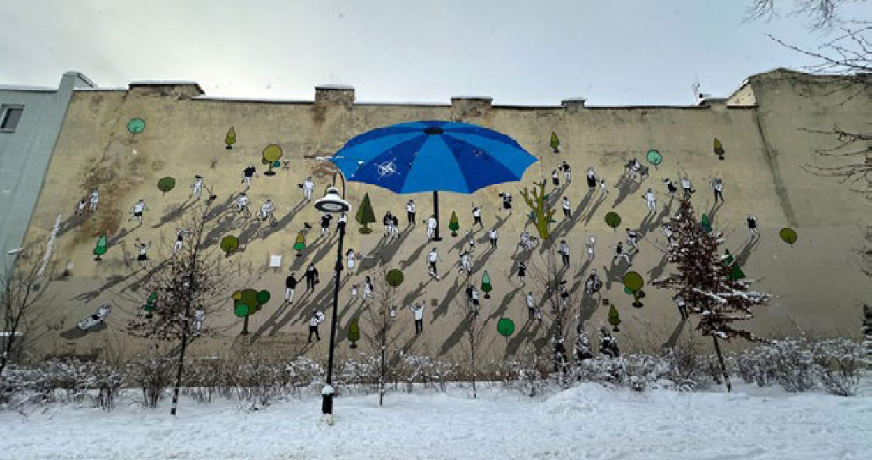 De muurschilderingwedstrijd is onderdeel van de campagne #ProtectTheFuture van de NAVO, een alliantiebreed betrokkenheidsprogramma voor jongeren dat het belang van vrijheid, veiligheid, democratische waarden en vrede benadrukt. De 1e muurschildering van deze NAVO-wedstrijd, getiteld 'Life Under a Peaceful Sky', (zie foto) werd in 2023 ontworpen door de jonge Litouwse kunstenaar Žygimantas Amelinas en is te vinden op een muur naast het Reformatiplein in Vilnius. De 2e muurschildering van de NAVO, getiteld 'Security Through Cooperation', werd in 2024 ontworpen door de jonge Deense kunstenaar Eske Toubourg, geschilderd door D.C. Mural-kunstenaar Hamilton Glass en is nu te zien in het centrum van Washington D.C., dicht bij het Walter E. Washington Conference Centre.